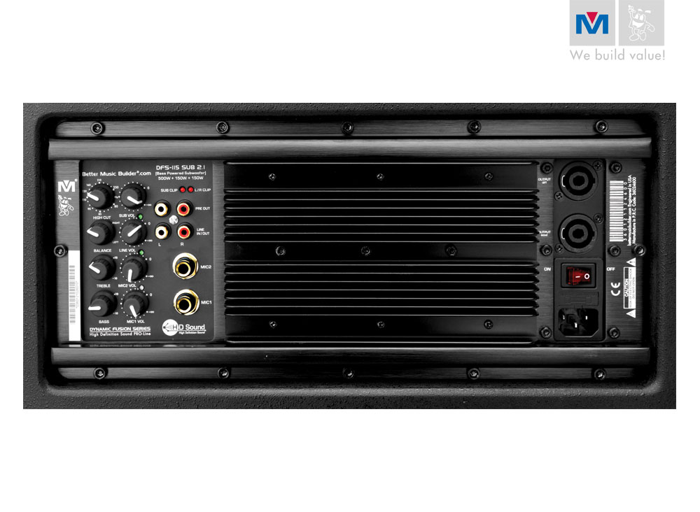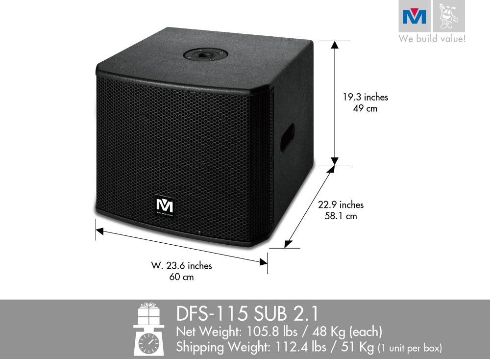 The DFS-112 SUB 2.1 and the DFS-115 SUB 2.1 are created to bring you simplicity and convenience. They are loaded with everything you needed to get started. These speakers are “powered,” which means they have amplifiers already built-in. Being a powered speaker, each model has the power to drive two other external speakers for a combined maximum power of 800 Watts (500W + 150W + 150W). Another one of its convenient features is the included two dedicated microphone inputs for vocal and musical instruments along with its own volume control.