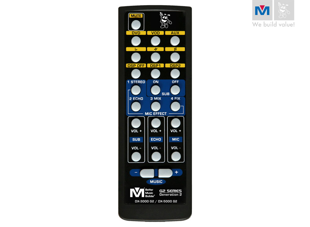 DX-5000 G2 is designed to be an individual Audio/Video Effects Processor (mixer) with more advanced features compared to a mixing amplifier with limited features. It has an easy to use echo effect processor and key control in contrast to a complicated DJ mixer. The DX-5000 G2 is designed to be simple to use by non-professionals while not lacking in any advance functions. These features are an improvement upon their predecessors, DX-5000. The updated control panel on DX-5000 G2 includes more effects functions and an improved LCD monitor. The DX-5000 G2 mixer has 5-channel suitable for home, PA, church, school, company conference, and café.