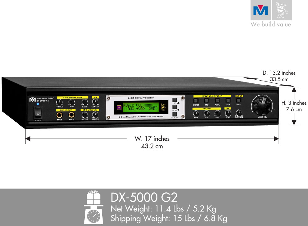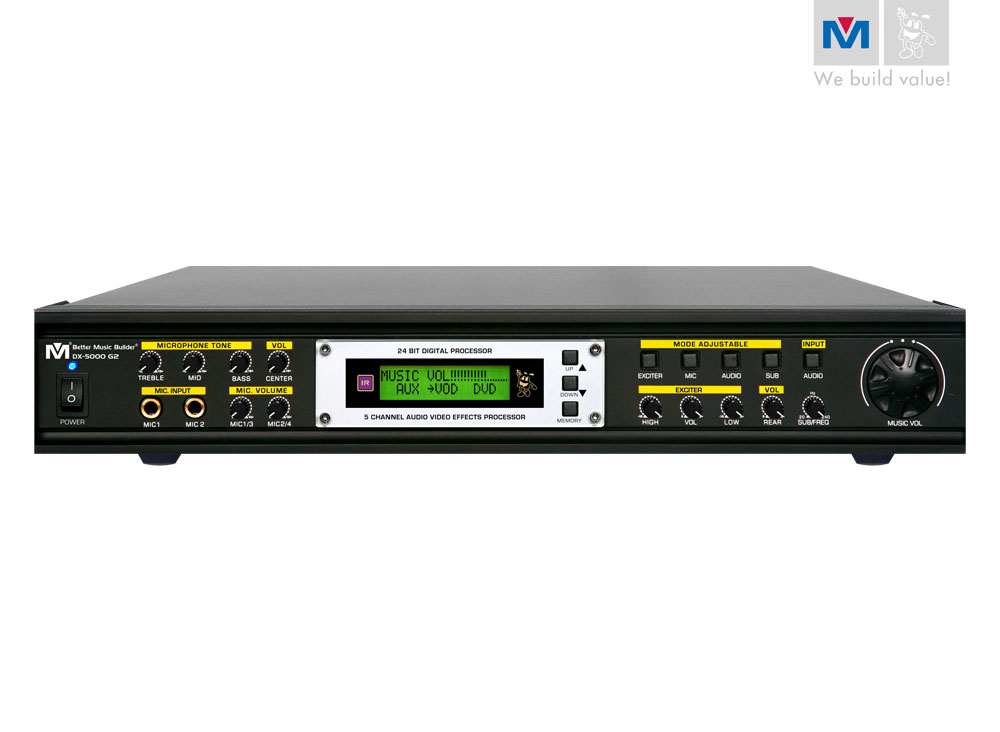 The new 5000 G2 is a Generation 2 Audio/Video Effects Processor from Better Music Builder. Built based on our observations and proven design of karaoke equipment improving audio technologies to satisfy the specific needs of consumers.